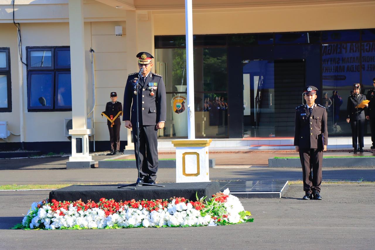 Upacara yang berlangsung khidmat di Lapangan Apel Polda Maluku Utara tersebut dipimpin oleh Karo SDM Polda Maluku Utara selaku Inspektur Upacara, dan dihadiri oleh Irwasda Polda Maluku Utara, para Pejabat Utama Polda Maluku Utara, para Perwira, Bintara, Tamtama, serta personel penerima tanda kehormatan dari Polda Maluku Utara dan Polres jajaran.