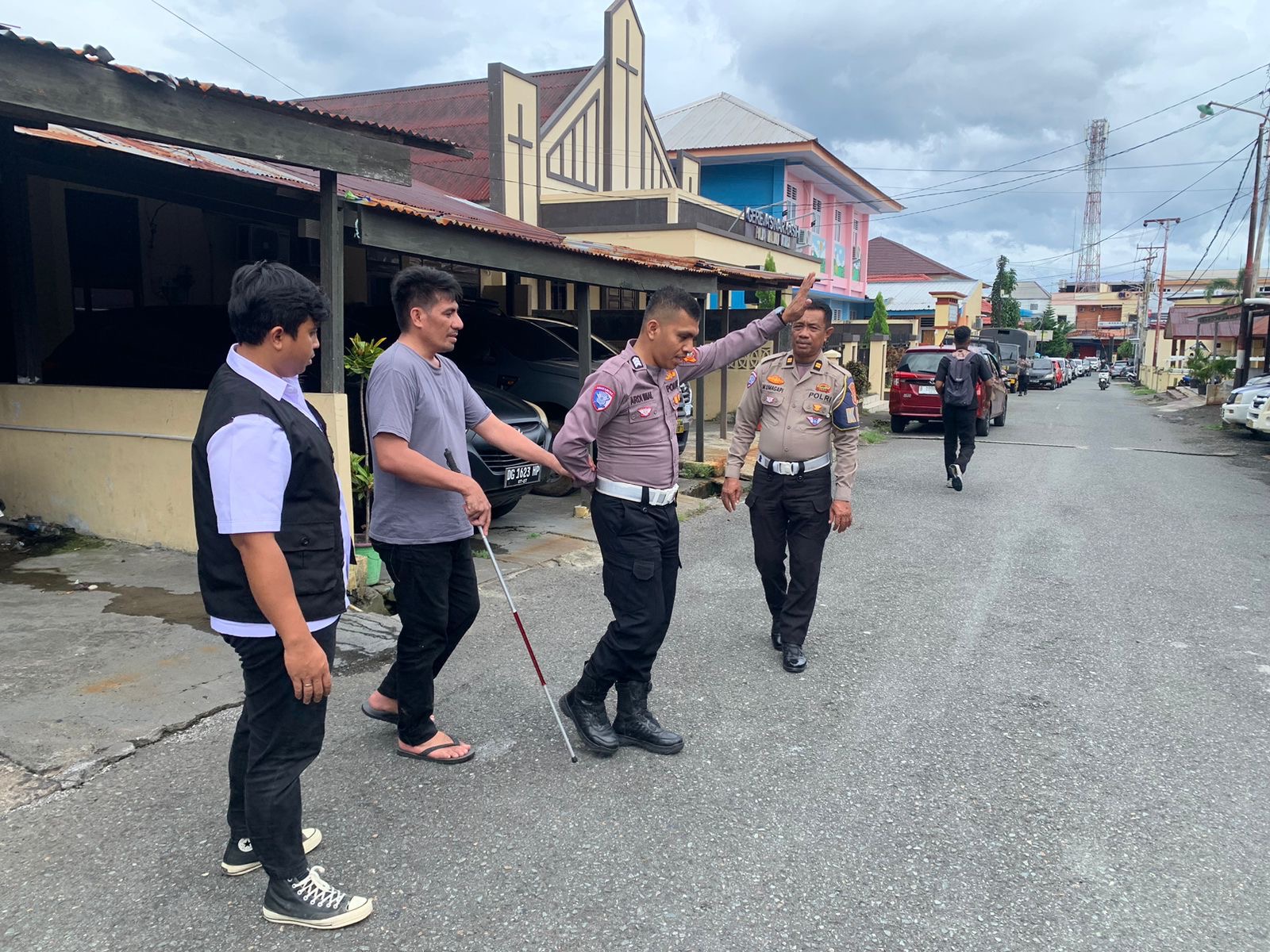 Ternate – Personil Sat Lantas Polres Ternate, dipimpin oleh AKP FARHA, S.T.K., S.I.K., melaksanakan kegiatan “Polantas Menyapa” dengan membantu penyandang disabilitas beraktivitas di sekitar jalan raya, pada Sabtu (6/12/25)