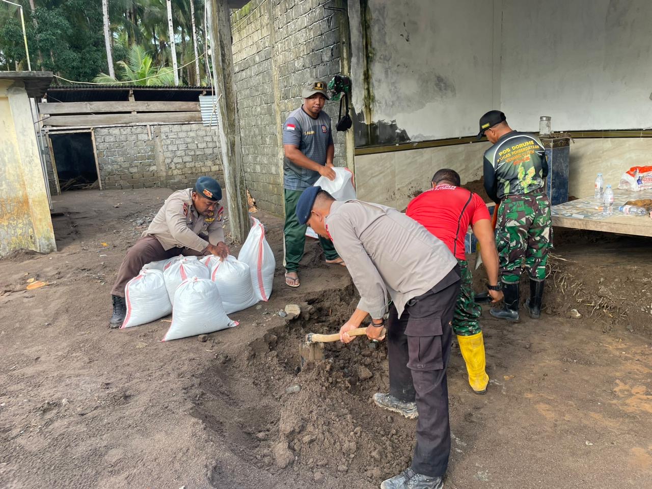 Selain itu, personel juga membangun tanggul darurat di sejumlah titik rawan untuk mencegah luapan air kembali memasuki area permukiman warga. Pembuatan tanggul sementara ini dilakukan secara gotong royong bersama masyarakat setempat.