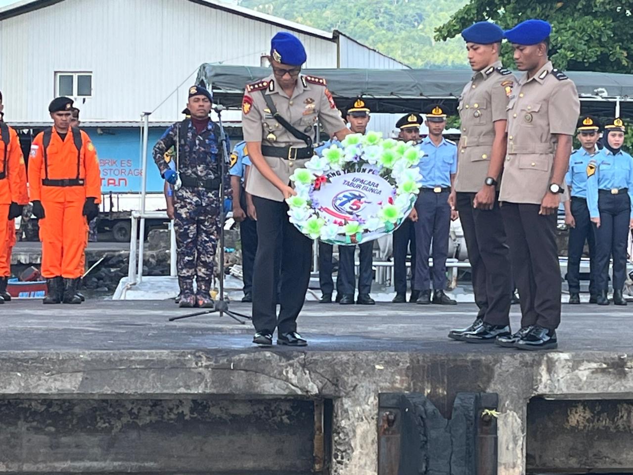 Upacara tabur bunga dipimpin oleh Direktur Polairud Polda Malut, Kombes Pol Azhari Juanda, S.I.K. Acara ini turut dihadiri oleh Danlanal Ternate, Kepala Kantor SAR Ternate, Kepala Kantor Bea Cukai Ternate, serta sejumlah tamu undangan.