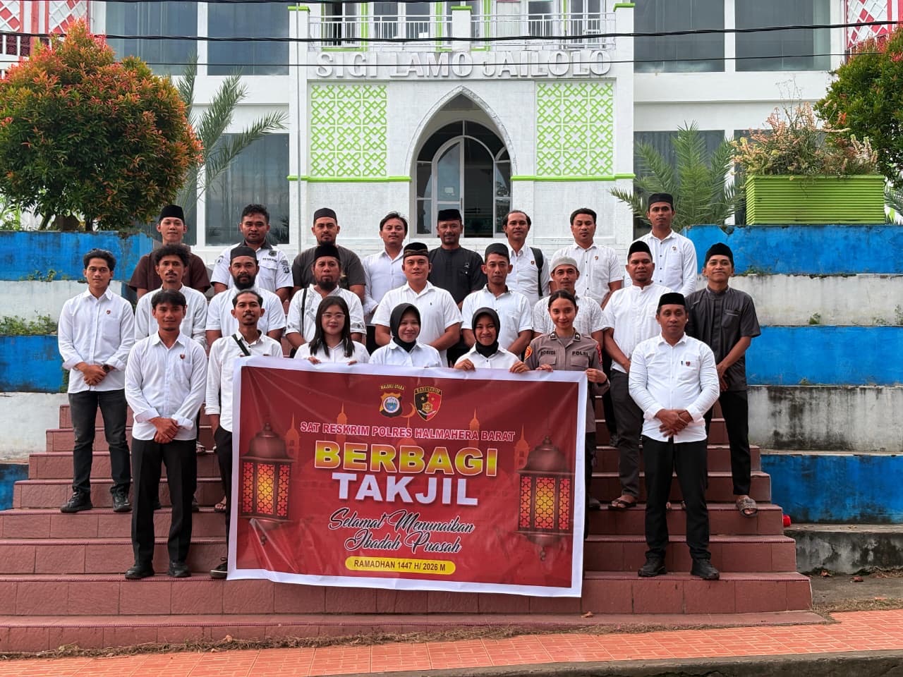 Satuan Reserse Kriminal (Sat Reskrim) Polres Halmahera Barat melaksanakan kegiatan berbagi takjil kepada masyarakat yang melintas di depan Masjid Sigi Lamo, Kota Jailolo, Senin (9/3/2026) sore.