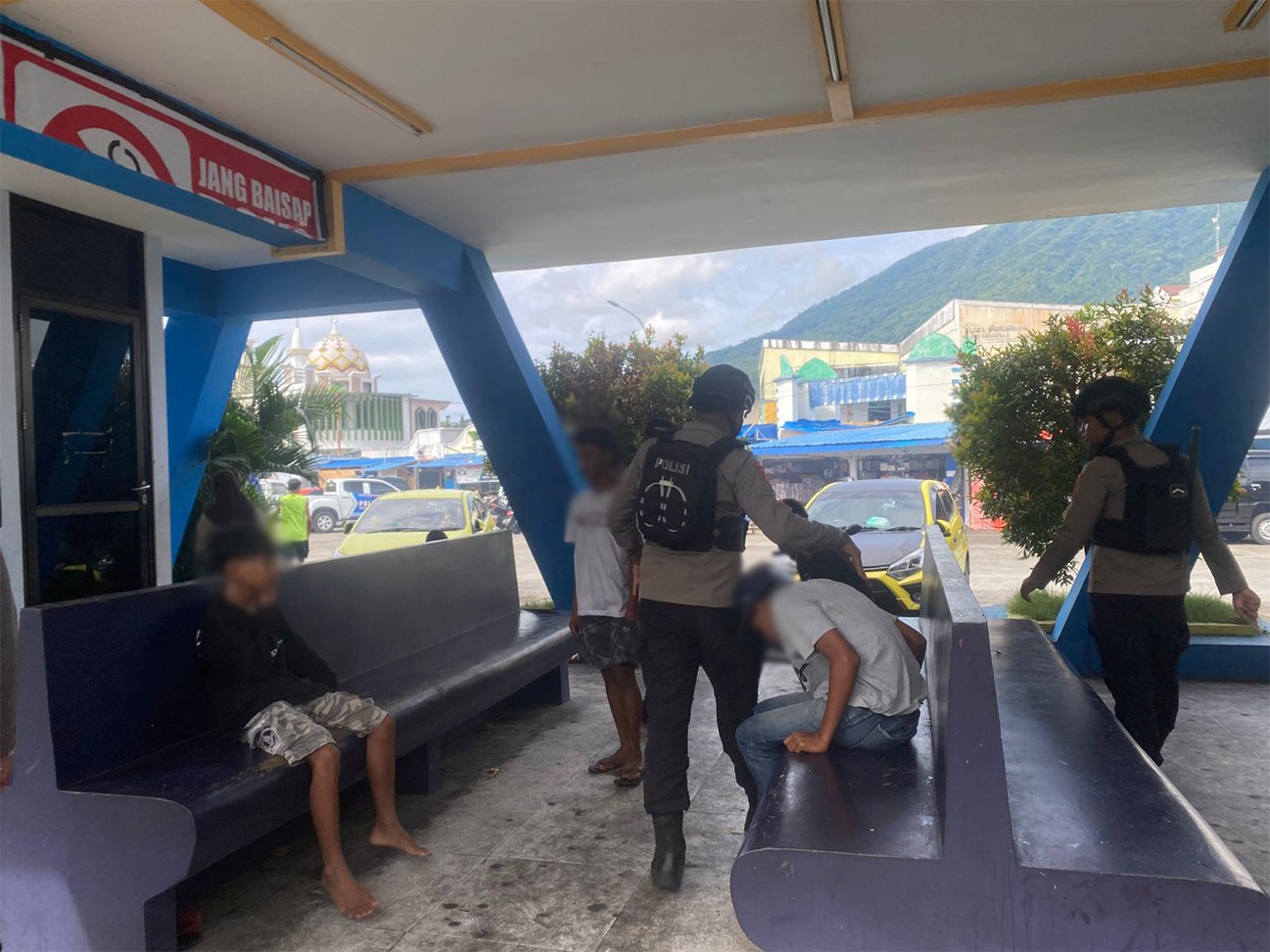 Ternate – Personel Patroli Unit 2 Sat Samapta Polres Ternate mengamankan sekelompok pemuda yang kedapatan menghisap lem jenis abon di Terminal Kelurahan Gamalama, Kecamatan Ternate Tengah, pada Sabtu (03/01/26).