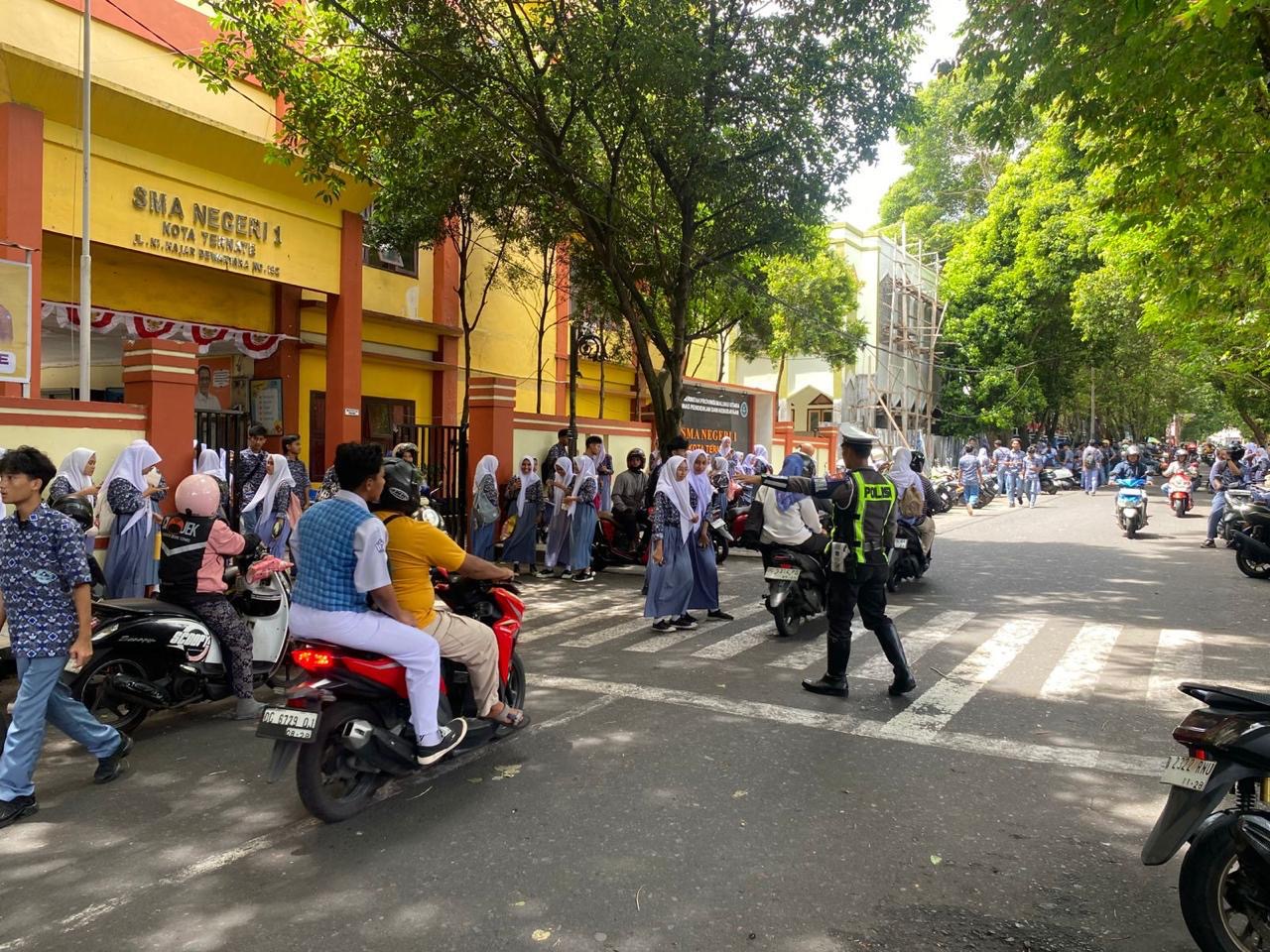 Dalam rangkaian kegiatan, personel Satlantas melaksanakan pengaturan lalu lintas (gatur lalin) di sejumlah titik sekolah guna membantu penyebrangan anak sekolah, yakni di depan SDN 10 Kota Ternate (Kecamatan Ternate Tengah), SDN 11 Kota Ternate (Kecamatan Ternate Selatan), serta di kawasan Jalan Siswa, Kecamatan Ternate Tengah. Kegiatan ini bertujuan menciptakan situasi lalu lintas yang aman dan lancar pada jam aktivitas sekolah.