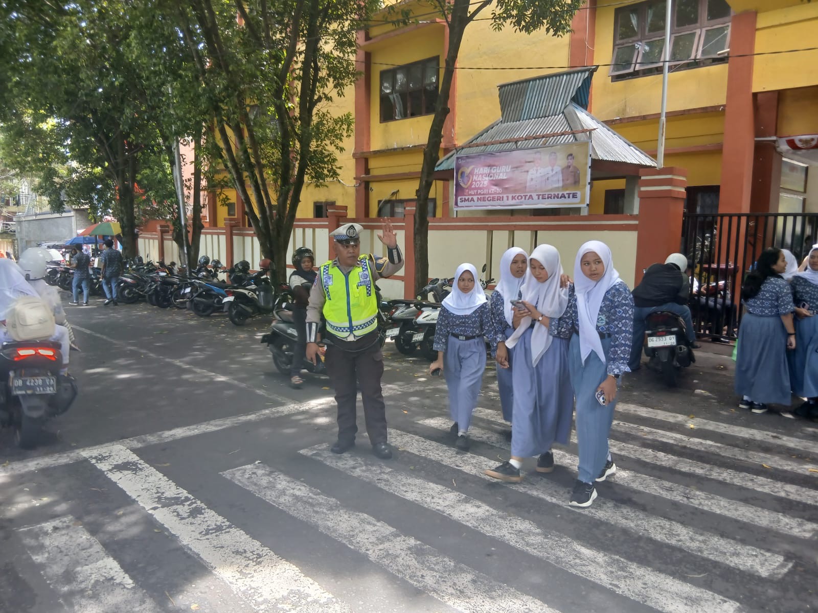 Dalam rangkaian kegiatan, personel Satlantas melaksanakan pengaturan lalu lintas (gatur lalin) di sejumlah titik sekolah guna membantu penyebrangan anak sekolah, yakni di depan SDN 10 Kota Ternate (Kecamatan Ternate Tengah), SDN 11 Kota Ternate (Kecamatan Ternate Selatan), serta di kawasan Jalan Siswa, Kecamatan Ternate Tengah. Kegiatan ini bertujuan menciptakan situasi lalu lintas yang aman dan lancar pada jam aktivitas sekolah.