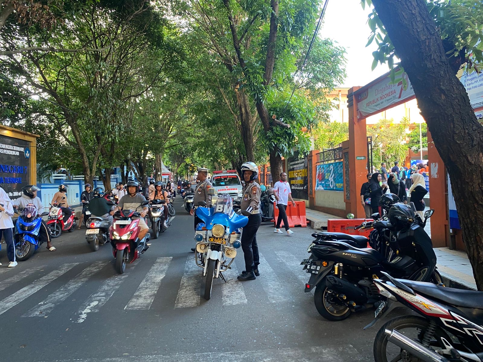 Pelaksanaan pengamanan dan pengaturan lalu lintas berlangsung dengan aman, tertib, dan lancar hingga kegiatan selesai.