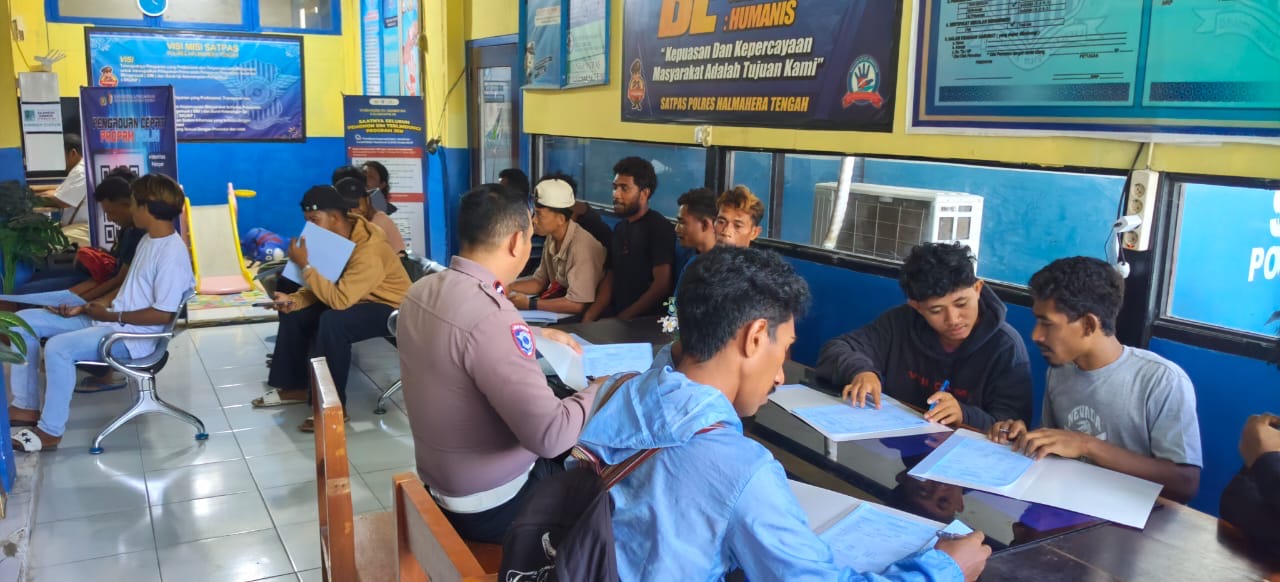 Kepolisian Resor Halmahera Tengah memberikan pelayanan pembuatan Surat Izin Mengemudi (SIM) secara gratis kepada warga Desa Sibenpopo, Selasa (14/4/2026). Kegiatan ini merupakan bagian dari upaya mendekatkan pelayanan kepolisian kepada masyarakat, khususnya di wilayah yang membutuhkan perhatian khusus.