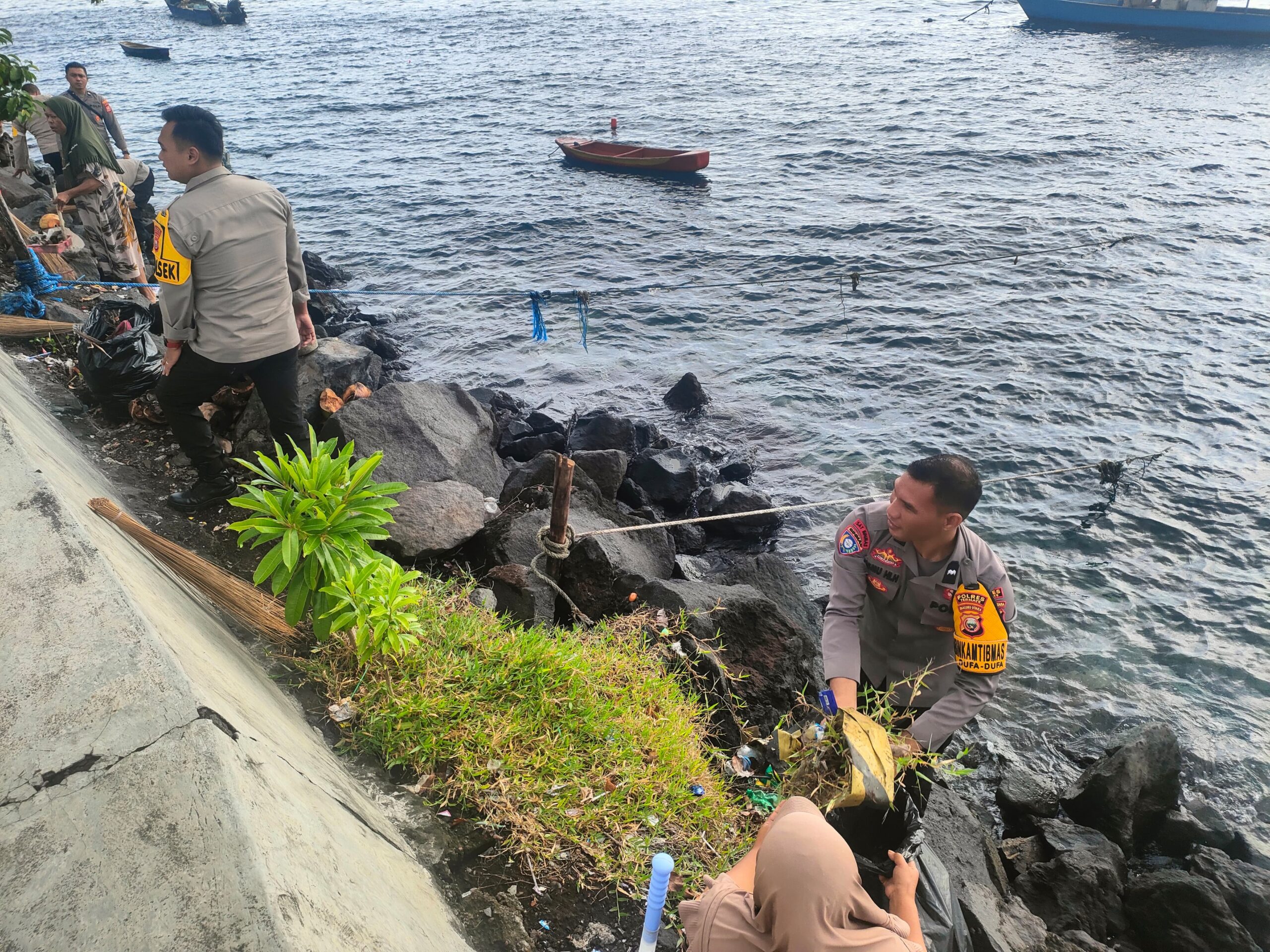 Sebagai bentuk pertanggung jawaban moral dan lingkungan, Polres Ternate bersama-sama masyarakat sekitar bergotong royong melakukan pembersihan pantai dari sisa-sisa sampah plastik hasil buangan tersebut maupun sampah lainnya yang berada di pantai.