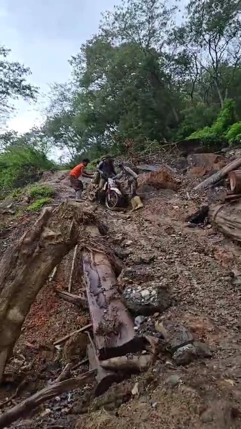 Sepanjang perjalanan, sejumlah titik jalan tertutup material tanah dan lumpur. Bahkan, beberapa akses jalan antar desa dilaporkan putus total. Kondisi ini membuat kendaraan roda empat tidak dapat melintas, sementara kendaraan roda dua harus berjibaku melewati medan yang berat dan berbahaya. Curah hujan yang masih tinggi semakin memperparah kondisi jalur yang dilalui.