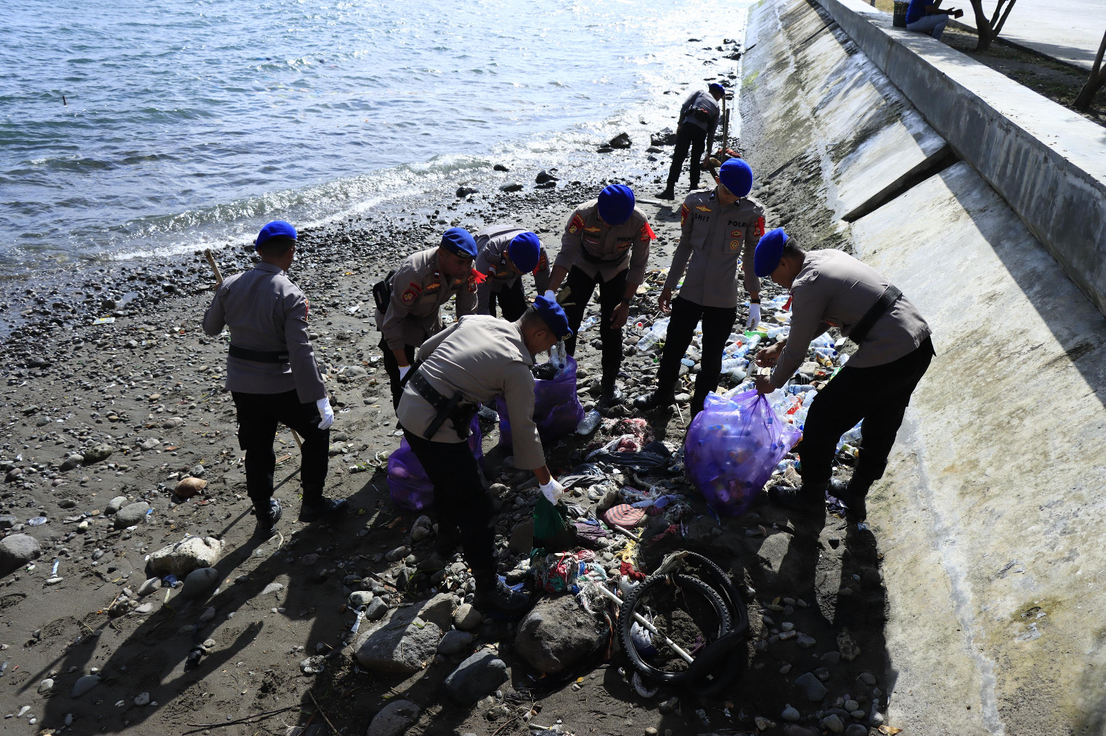 Kabidhumas Polda Malut Kombes Pol. Wahyu Istanto Bram W., S.H., S.I.K., M.I.K., mengatakan disela-sela waktu saat melalukan pengamanan di area pelabuhan para personel bahu-membahu menyisir bibir pantai. Mereka mengumpulkan berbagai jenis sampah, mulai dari limbah plastik, kain bekas, hingga sampah rumah tangga yang tertimbun di antara bebatuan dan pasir.