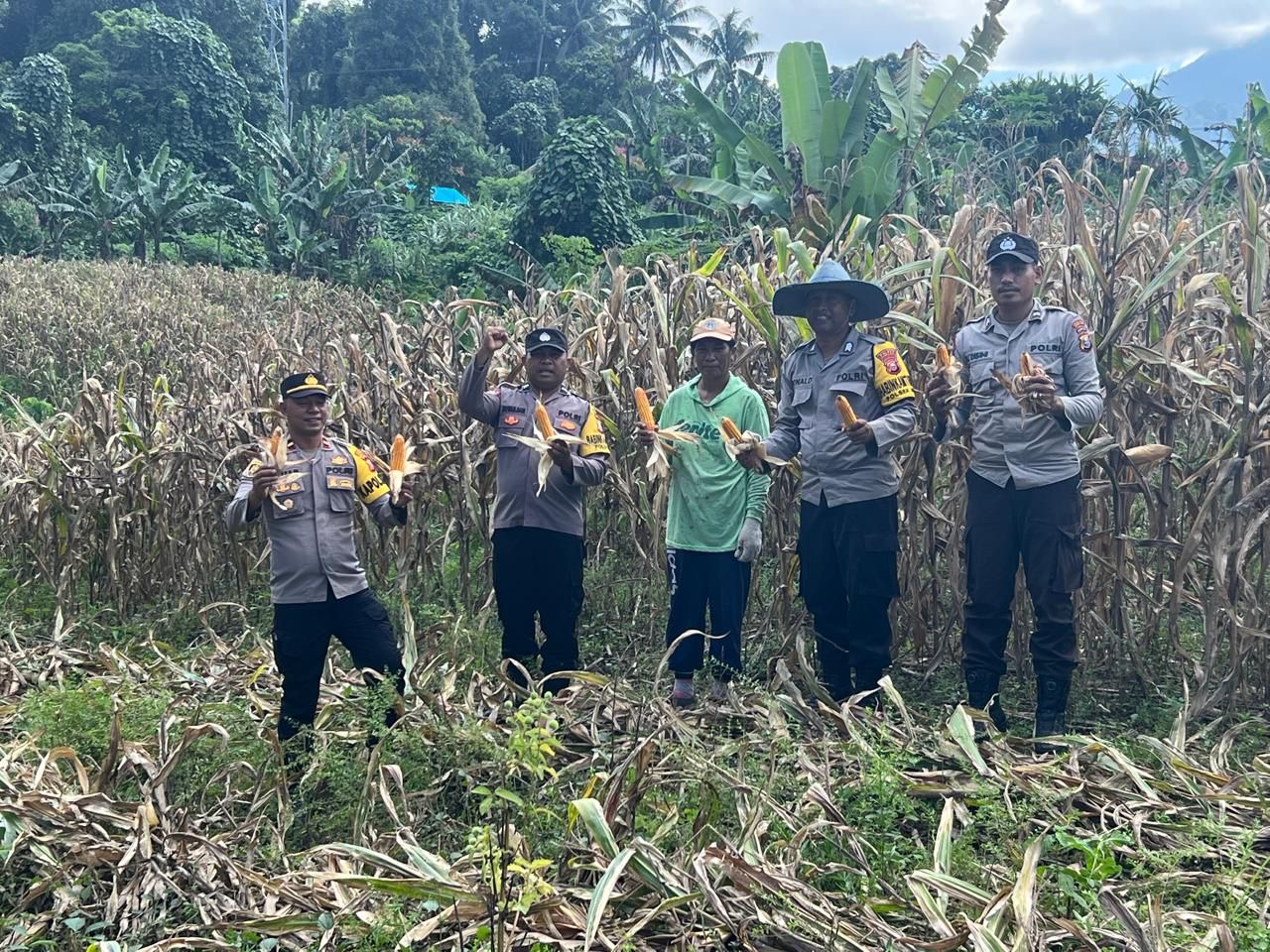Sebagai wujud nyata dukungan terhadap ketahanan pangan nasional, personel Polsek Ibu, Polres Halmahera Barat, turun langsung memanen jagung kuartal III di ladang Kelompok Tani Pomakariwo, Desa Kie Ici, Senin (29/9) kemarin. Kegiatan ini dipimpin langsung oleh Kapolsek Ibu, Ipda Muis Ode Amran, S.H., didampingi Bhabinkamtibmas dan personel lainnya.